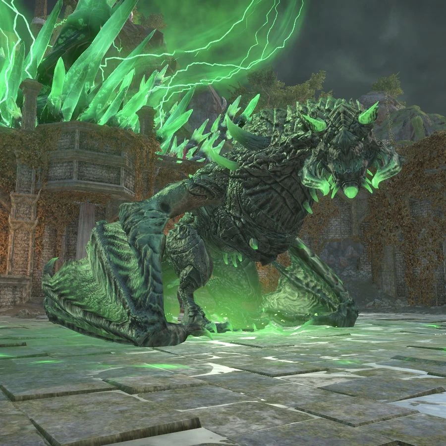 Po získání Wrathstonu okolo roku 582, císařský bojový mág Abnur Tharn neúmyslně osvobodil draky z jejich vězení v Halách Kolosu, což způsobilo, že mohli pokračovat v svém cíli získat moc Měsíce. Draci se spojili s armádami rimmenské královny, Euraxie Tharnové, které byli přesvědčené, že byly jejich noví spojenci ochotní nechat sebou manipulovat. Draci nezaháleli a obrátili se proti Euraxii, když jim již nebyla k ničemu, a ta zůstala bez podpory proti boji s elsweyrskou obranou jednotkou a Vestigem. Tento rozvoj událostí skončil její smrtí a navrácení Rimmenu do khajiitských rukou. Euraxiiny vojenské složky, nyní bez vůdce, se opět spojily s draky, aby se vyhnuly jejich hněvu.[59] Draci byli zastaveni, když Vestige vstoupil do říše Jode a zastavil Kaalgrontiida a jeho druh, čímž znemožnil, aby byla lunární moc absorbována úplně.[59]