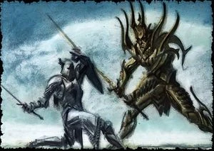 Vyobrazení Pelinala Whitestrakea v souboji s Umarilem Neopeřeným